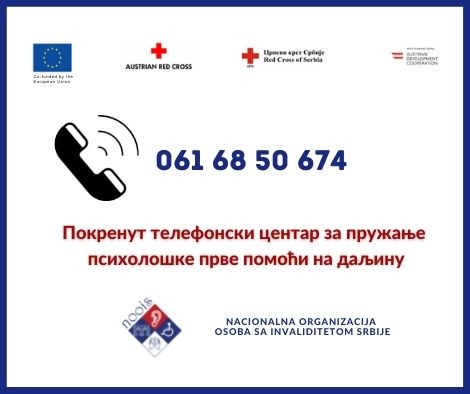 Opširnije: Покренут телефонски центар за пружање психолошке прве помоћи за особе са инвалидитетом